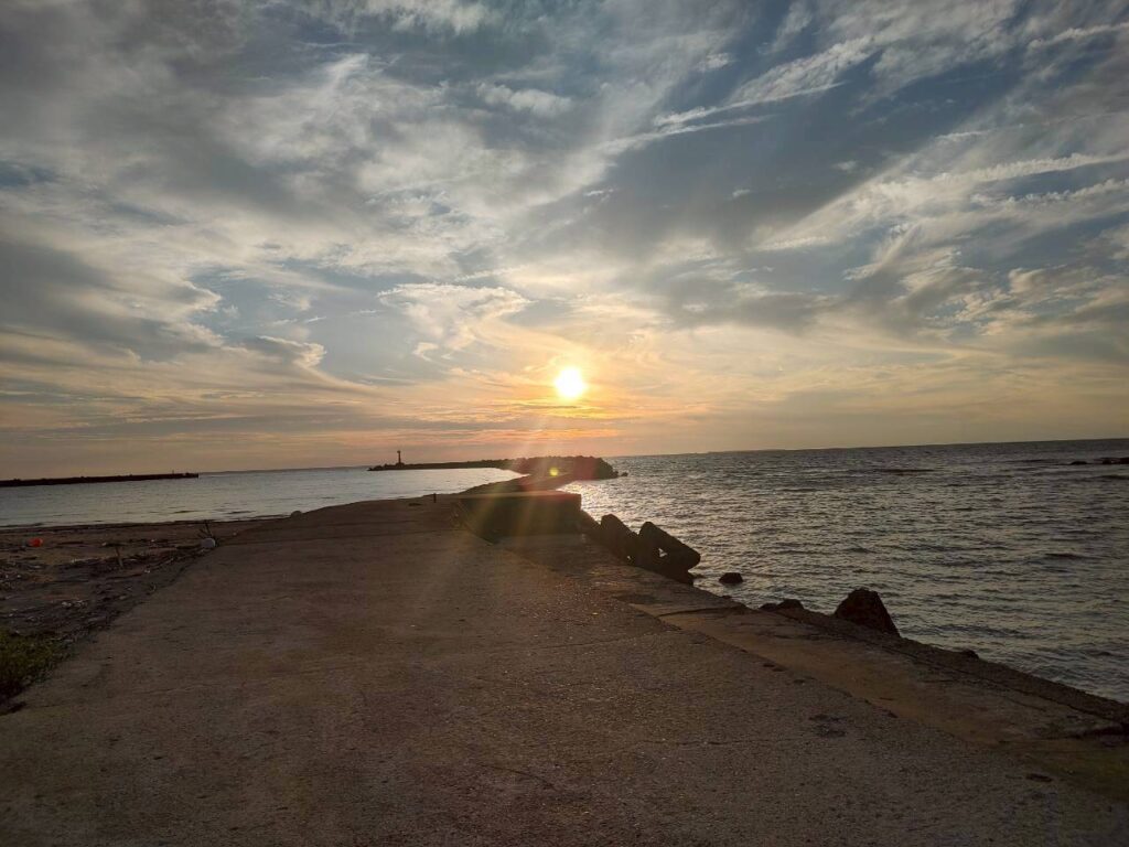 吹浦漁港からの夕日、